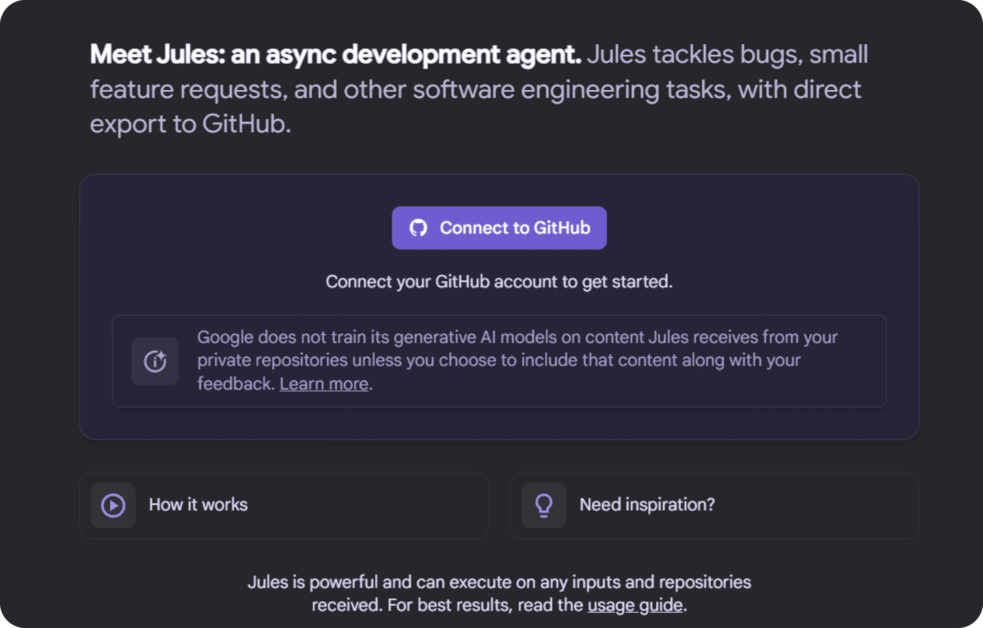 Once you're logged in and GitHub is linked, you're all set to give Jules some real work.